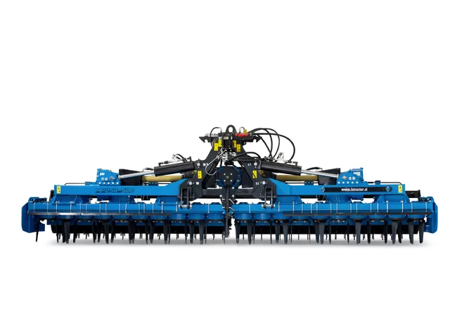 The harrow is hydraulically foldable and comes standard with work lights. Additionally, it features a multi-speed gearbox, which further enhances work efficiency under different soil hardness conditions.